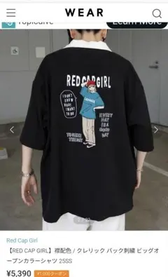 バック刺繍 ビッグオープンカラーシャツ red cap girl