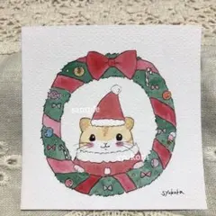 原画 水彩画 ハムスター クリスマス 手描きイラスト オリジナルイラスト 額なし