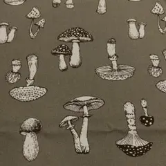 1m オックス キノコ柄 カーキ系 生地 はぎれ