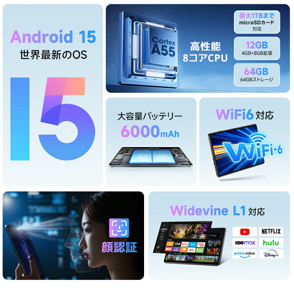 【大感謝祭◎3000円OFFクーポン】\楽天1位/ タブレット 10.1インチ Android16 15 14 Wi-Fiモデル RAM12GB ROM64GB 1280*800解像度 IPS液晶 6000mAh大容量 軽量 ネット授業 OTG対応 大人気 おすすめ タブレットPC 誕生日 プレゼント 格安タブレット プレゼント 端末 本体