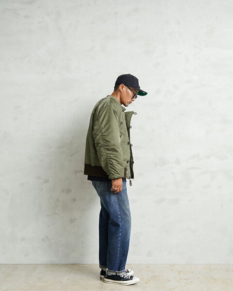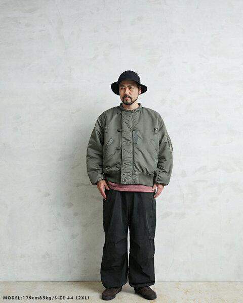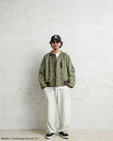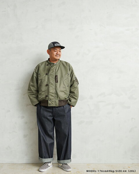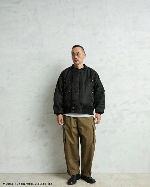 WAIPER.incでは襟ぐりのファスナーを排除し、最大の特徴である首回りをよりすっきりと仕上げました。シルエットは大人が着ても子供っぽくならないリラックス感のあるオーバーサイズに仕上げ、昔の良いディテールと現代のファッションがうまく融合できているフライトジャケットとなっています。