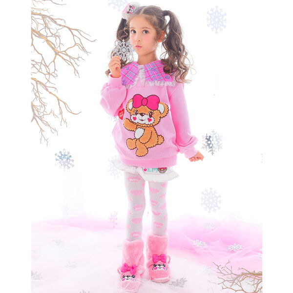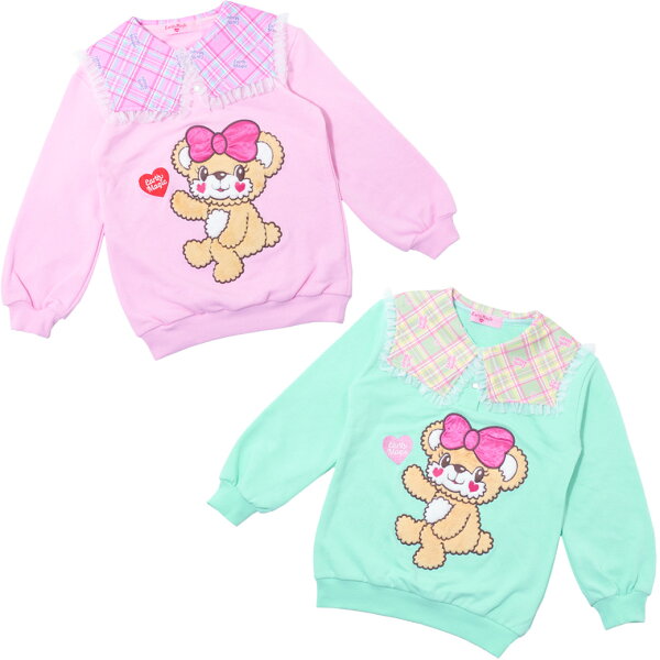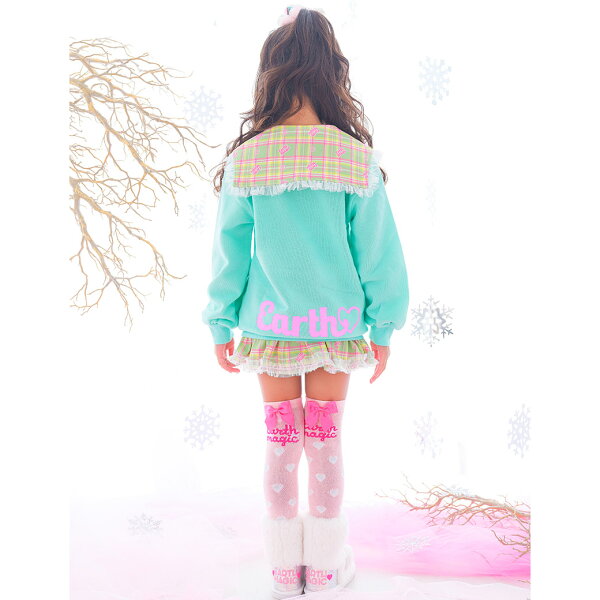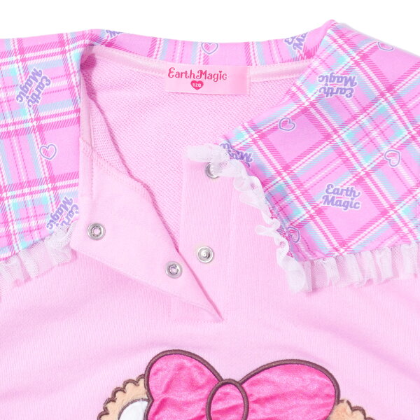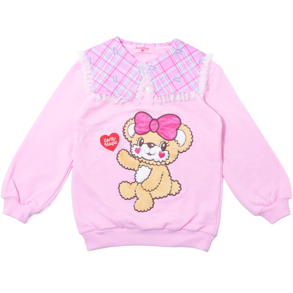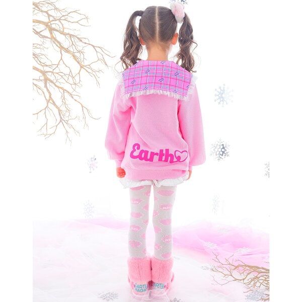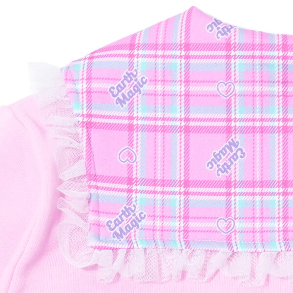 EARTHMAGIC【正規取扱店】アースマジック タータンスクエアカラー裏毛トレーナー ペールピンク グリーン 緑 マフィー 女児 女の子 子供服 キッズ トップス 100cm 120cm 【50%OFF】