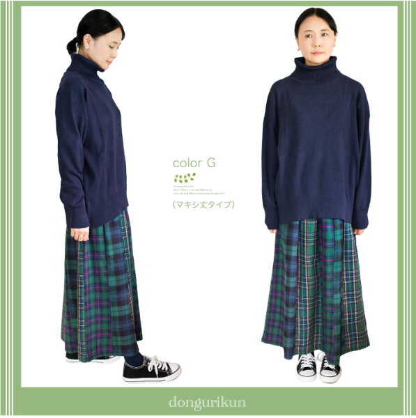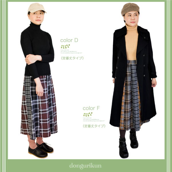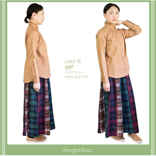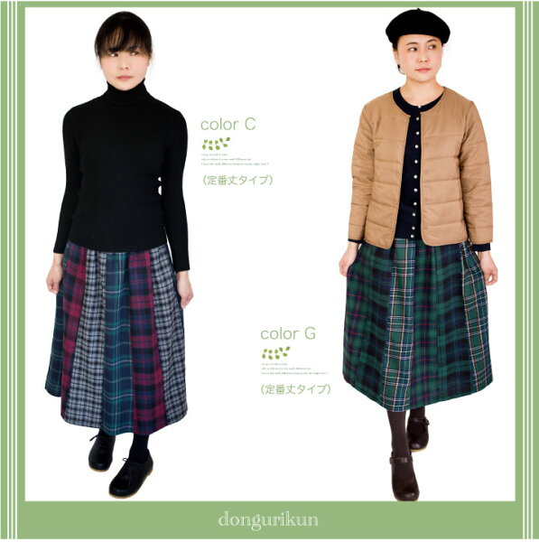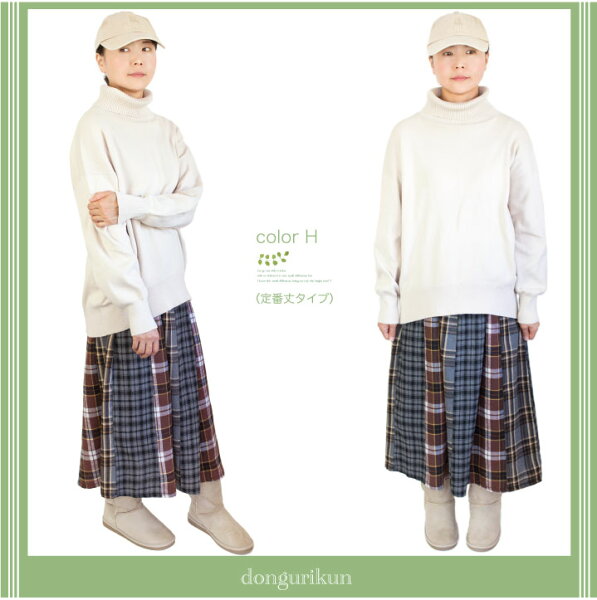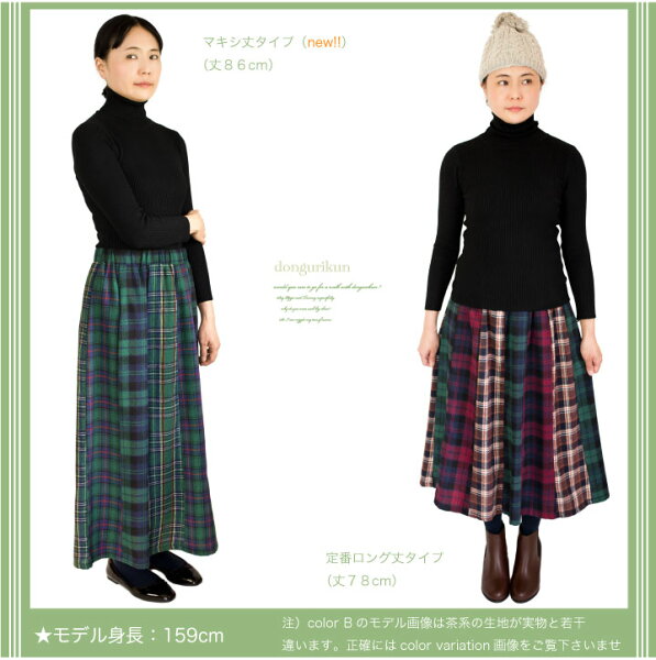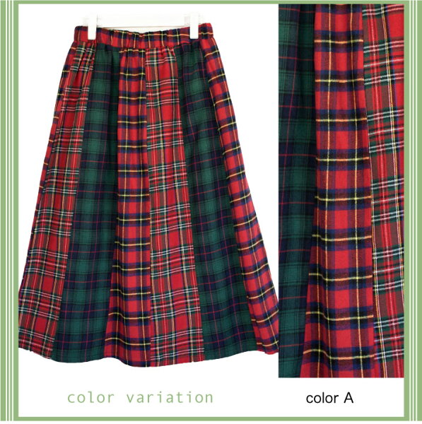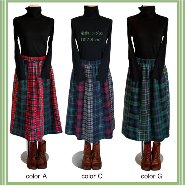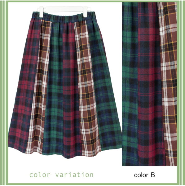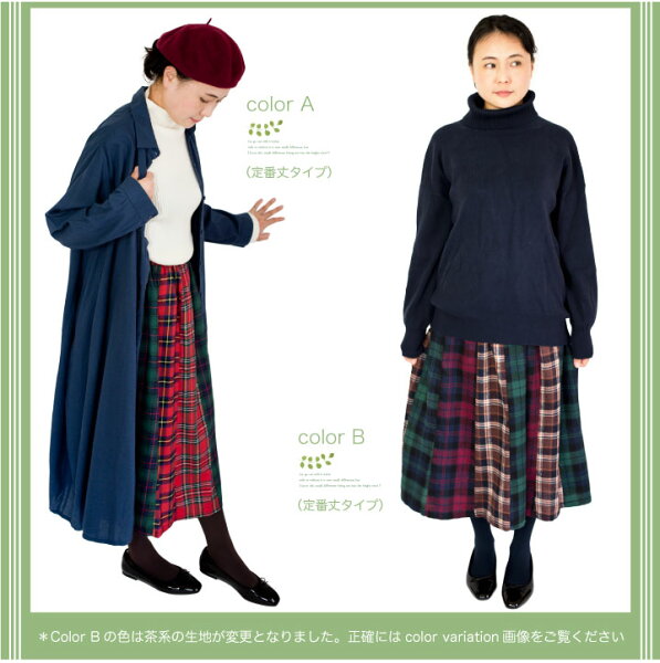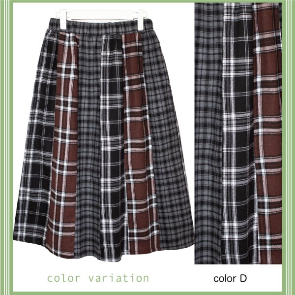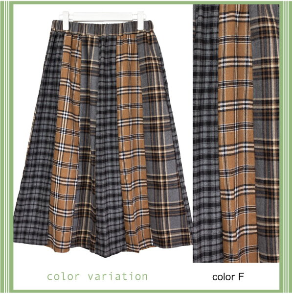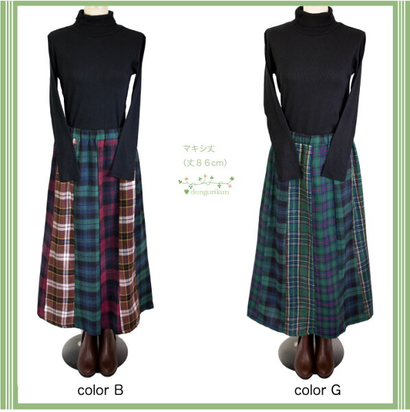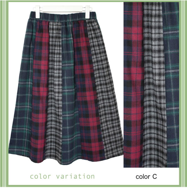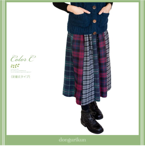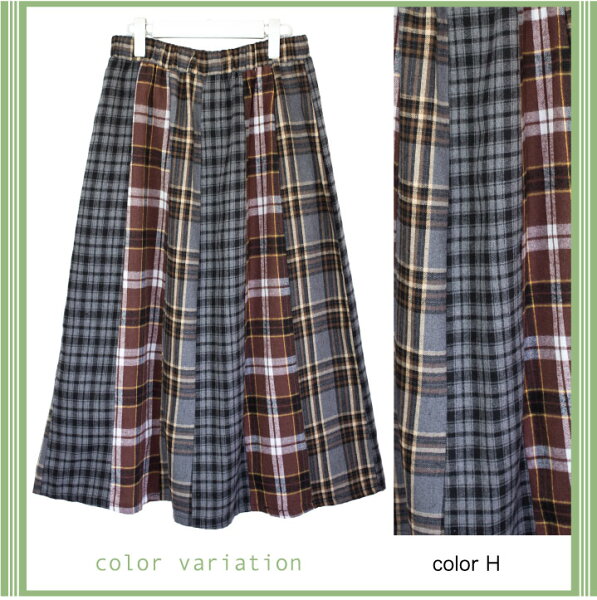 SALE !! マキシ丈タイプ新入荷!!大人気ロングセラー!チェック柄×縦パッチワーク♪ミモレ丈ロングスカート / 暖かみのある綿80%のほんのり起毛素材 ウエストゴム 調整紐付きAライン f2-5