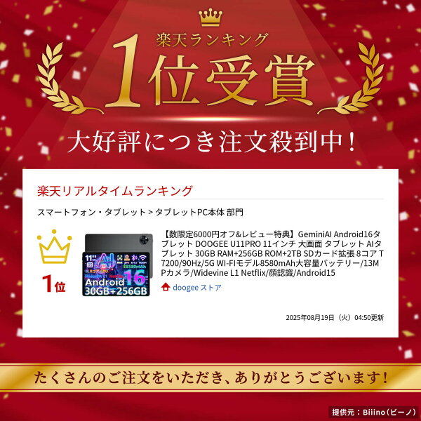 2025年7月最新登場のDOOGEE U11 Proは、業界に先駆けて最新Android 16を搭載した11インチAndroidタブレットです。Googleの最新AI「Gemini」がシステムに深く統合され、音声検索、AIノート、翻訳、スマート整理機能などを通じて、仕事・学習・日常のあらゆるシーンを直感的かつ効率的にサポートします。AI技術と最先端OSが融合することで、アプリ起動やマルチタスク、Webブラウジング、YouTubeやNetflixなどの動画視聴もよりスムーズに。最新機能を備えたU11 Proは、オンライン授業やビジネス、在宅ワーク、エンタメまで幅広く活躍する大画面タブレットです。