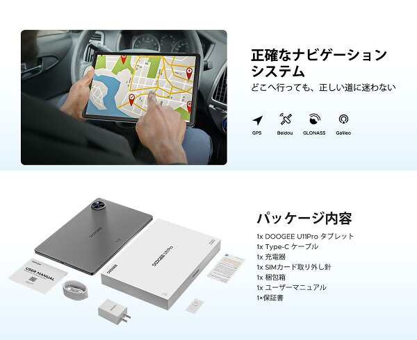 タブレット x1、充電器 x1、Type-C USBケーブル x1、SIMカードピン x1、ユーザーマニュアル x1 |