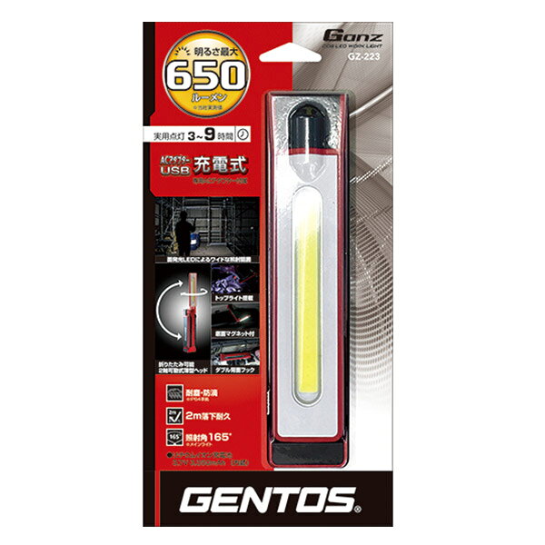 GENTOS ガンツ LEDワークライト 650ルーメン GZ-223 ジェントス LEDライト 作業等 折り畳み gz-223 充電式 ワークライト
