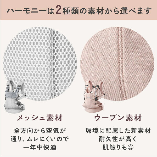 ①抱っこ紐本体 (HARMONY / ハーモニー)ベビービョルン ハーモニーは新生児から3歳頃まで使える抱っこ紐です。