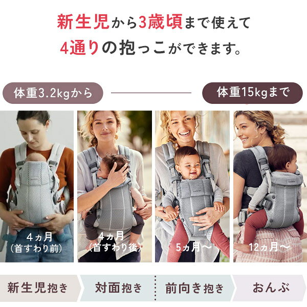 赤ちゃんの抱っこを高い位置で固定できるヒップシートポジションで、パパママの負担を軽減。