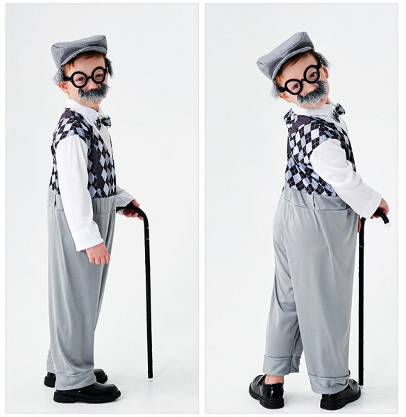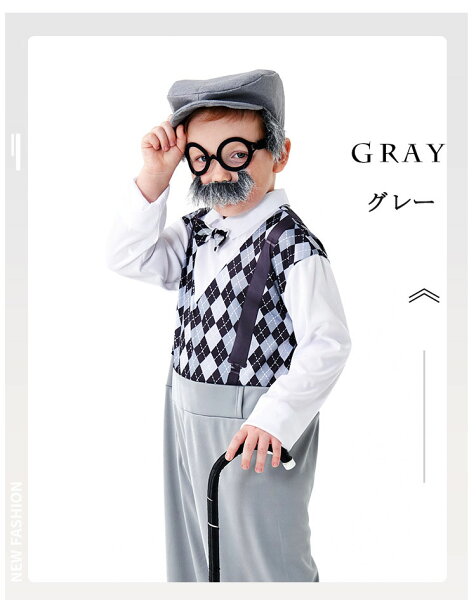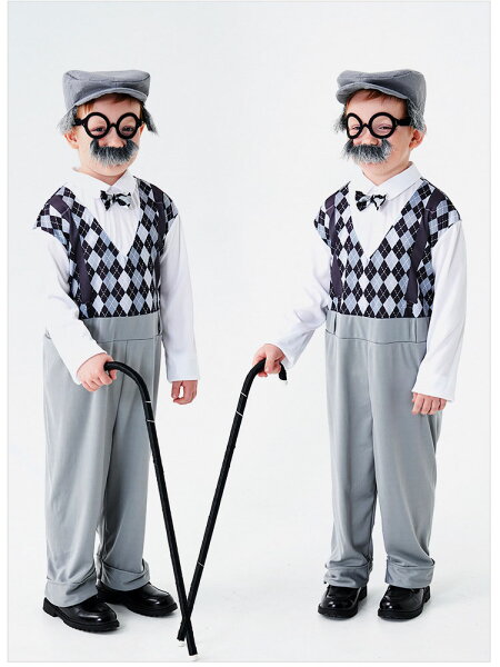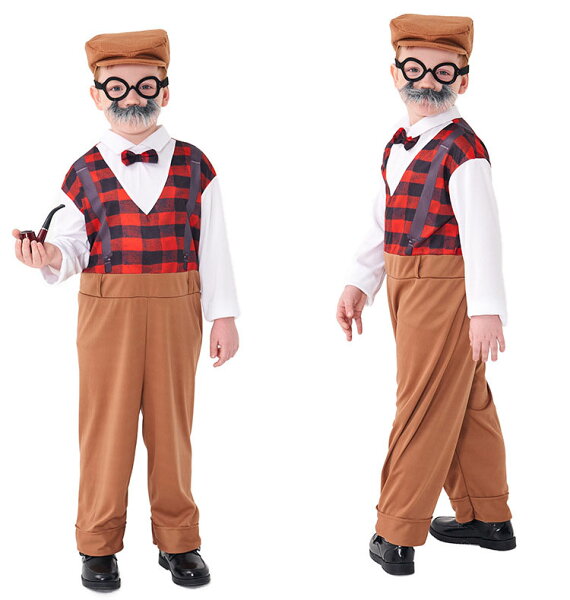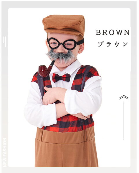 ハロウィン 仮装 子供 おもしろ コスチューム 衣装 おじいさん コスプレ オールインワン メガネ 髭 帽子 セット ポリエステル 仮装 衣装 ハロウィンコスプレ 面白い パーティー コスプレ衣装 ステージ 舞台 小学生 学園祭 演劇 Halloween cosplay XS L 2色