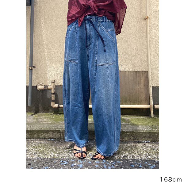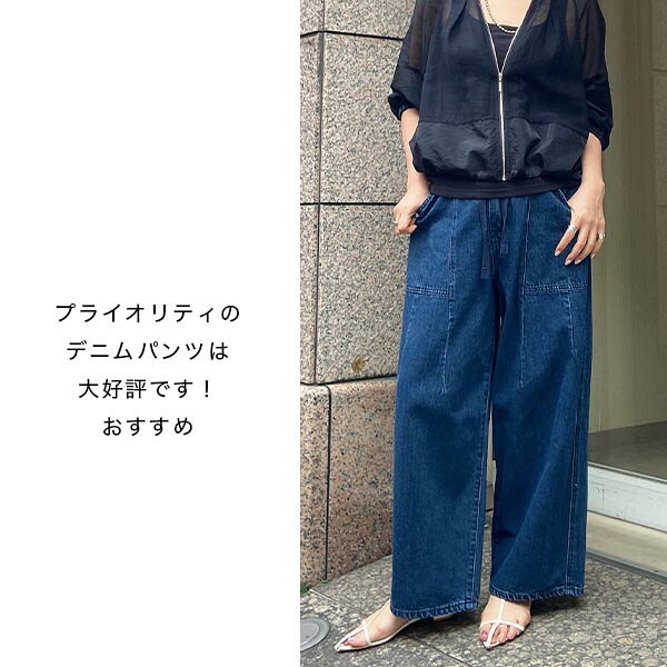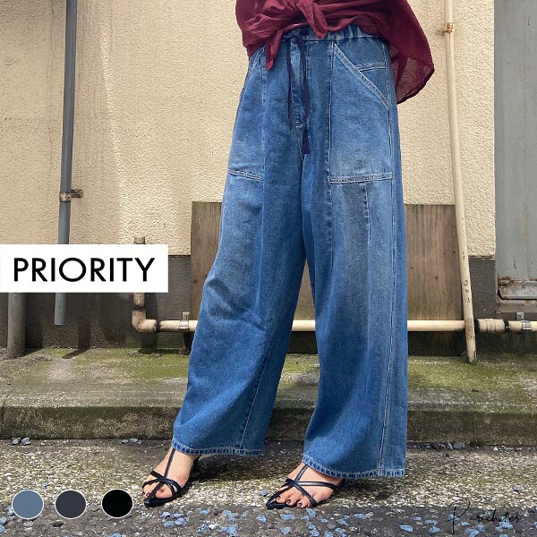 再入荷!【PRIORITY】プライオリティ ワイドデニムパンツ P52001AI 夏 デニム ウエストゴム ワイドパンツ ゆったり かわいい おしゃれ カジュアル きれいめ プライオリティー 人気 30代 40代 50代 お薦め PRIORITY 正規取扱店 オンラインショップ