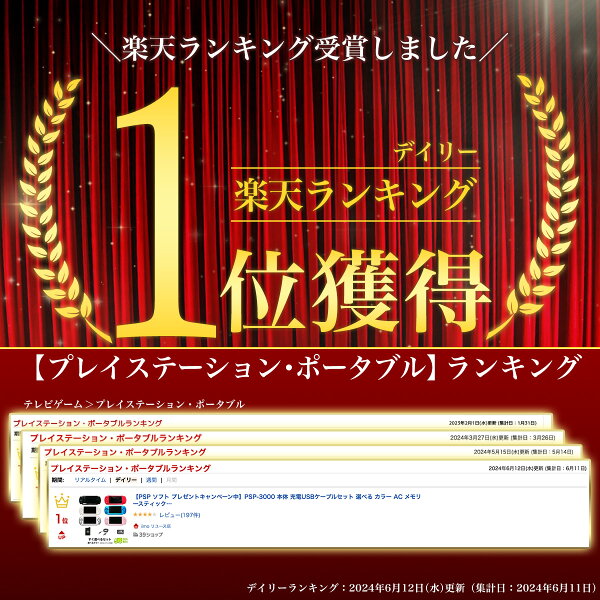 【60日保証キャンペーン中】PSP-3000 本体 充電USBケーブルセット 選べる カラー AC メモリースティック(ランダム)付 プレイステーションポータブル PlayStationPortable SONY ソニー【中古】