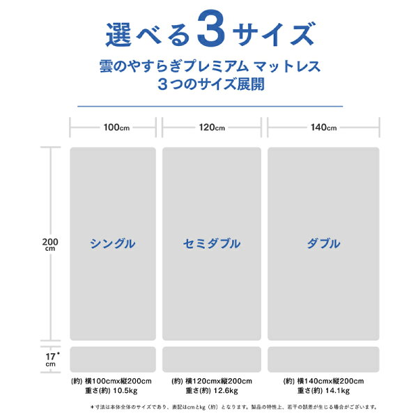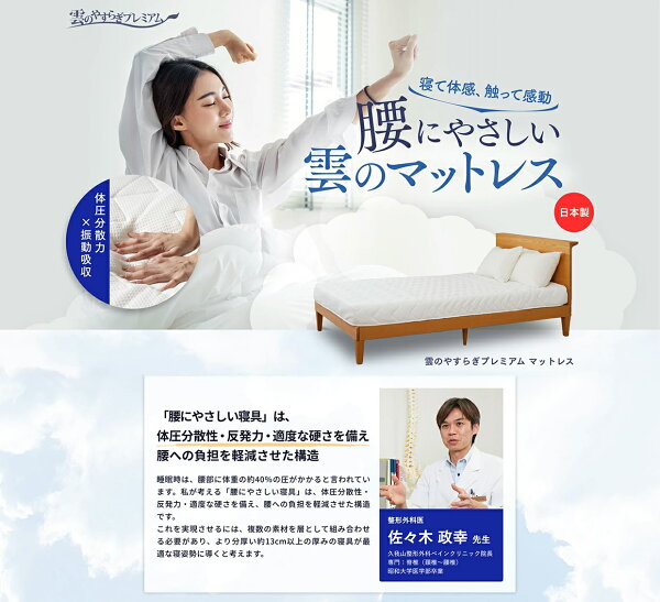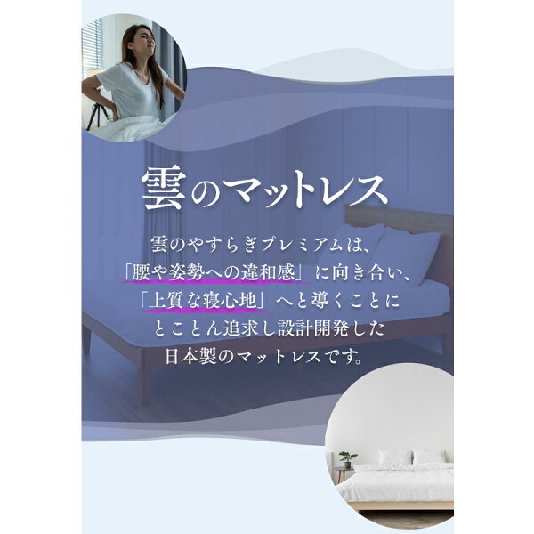 【公式】マットレス シングル 雲のやすらぎプレミアム 快眠 安眠 ホワイト 日本製 高反発 体圧分散 防ダニ 防臭 極厚 贅沢羊毛 白 春夏 秋冬 ウレタン 新生活 引っ越し 模様替え 新居 厚さ 約 17cm 送料無料