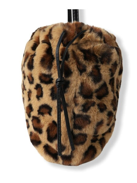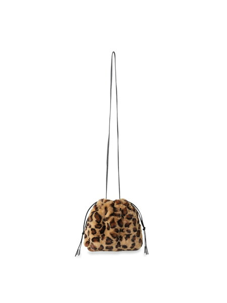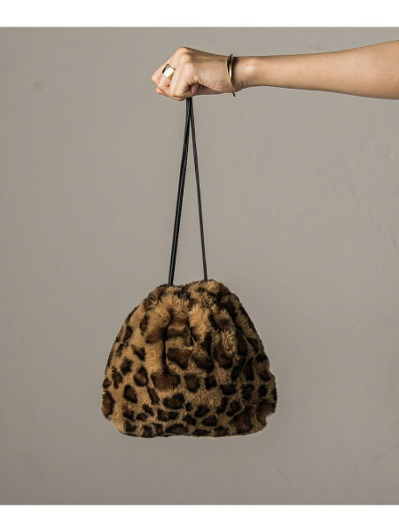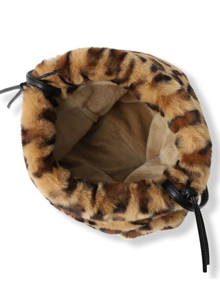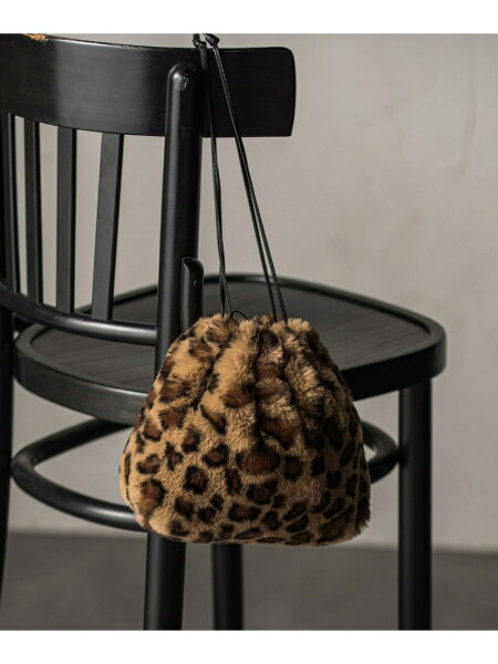 ころんとした丸みのあるフォルムが愛らしい、フェイスファー巾着バッグ。