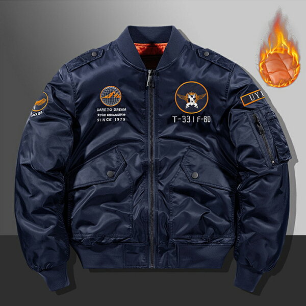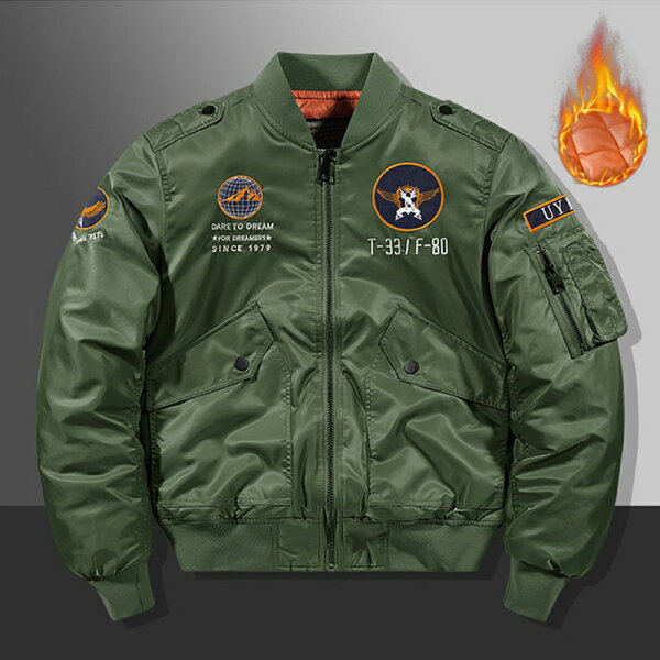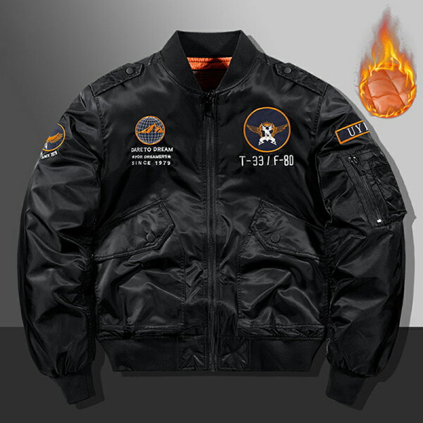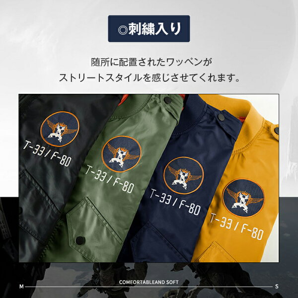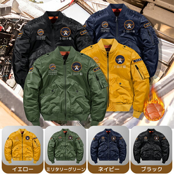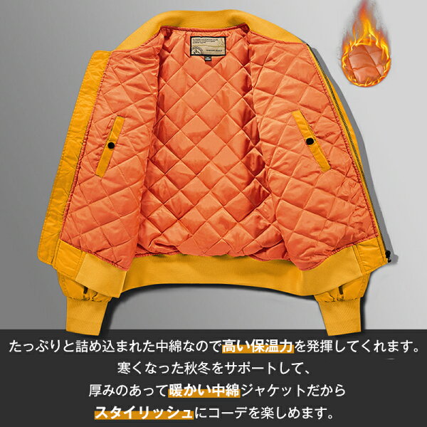 【大感謝祭セール・500円OFFクーポン】ミリタリージャケットメンズ おしゃれ MA-1フライトジャケット 春秋冬 防風防寒 中綿入り 暖かいコート マルチポケット バイクジャケット ジャンパー ブルゾン アウター 多ポケットカジュアル 立ち襟 刺繍 軍物ワッペン アメカジ