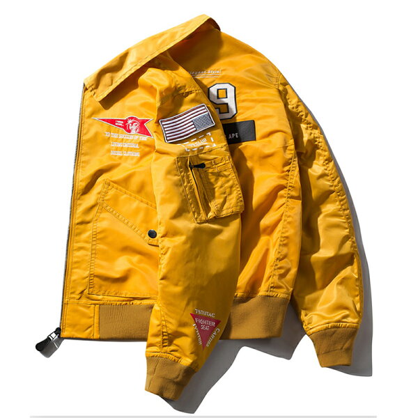 【大感謝祭セール・500円OFFクーポン】ミリタリージャケット メンズ アウター 春 秋 冬 おしゃれ MA-1 フライトジャケット バイクジャケット ブルゾン 春服 秋 コート ワッペン 刺繍 バイク ジャンパー 大きいサイズあり M~3XL ブラック ミリタリーグリーン イエロー レッド