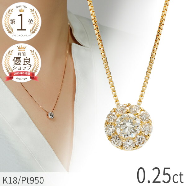 【10%OFFクーポン】【即納可】【大きめ】 ダイヤモンド ネックレス 一粒風 0.25ct プラチナ 950 18金 イエローゴールド k18 ピンクゴールド 18k ダイアモンド ダイヤ ジュエリー 4月 誕生石 日本製 ギフト プレゼント ダイア ベネチアンチェーン 贈り物