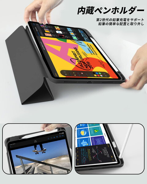 取り外しやすいペンホルダーも搭載しており、Apple Pencilを充電しながら収納可能です。オートスリープ・ウェイク機能も付いているため、使いたいときにすぐに使えます。軽量で薄型設計ながら、耐衝撃性も兼ね備えているこのケースは、日常使いにぴったりです。あなたの大切なiPadを守りつつ、快適に使える環境を提供します。