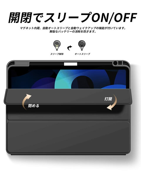 さらに、オートスリープおよびウェイク機能により、カバーを開けるだけでスマートに電源が入ります。これにより、電源ボタンをわざわざ押す手間が省け、使い勝手が格段に向上します。日常的にiPadを使う人にとって、この機能は非常に助かります。