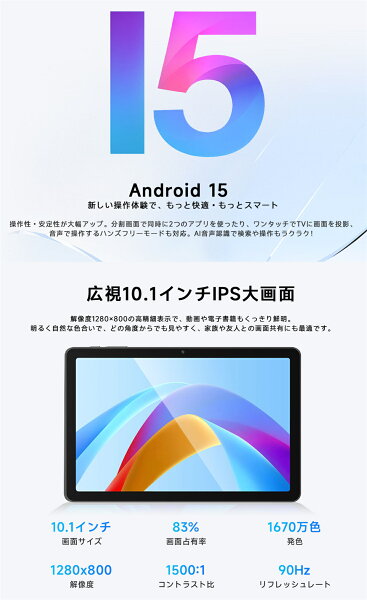 【大感謝祭★クーポンで19,990円&カバー特典】国内正規品 フィリップス 楽天1位★PHILIPS タブレット T7315 Android15 AI T615 8コア 90Hz 10.1インチIPS 1280×800 1670万色 4GB+128GB+1TB拡張 6000mAh wifi 急速充電 GPS 分割画面 投影 ユーザー補助 c 1年保証