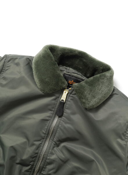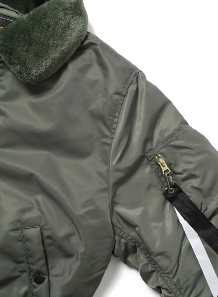 ウールパイルのボアカラーや酸素マスクを吊るすオキシジェンタブ、ペン差しなど、過酷な飛行環境に対応するための機能を備え、フライトジャケットの歴史の中でも重要な位置を占めています。