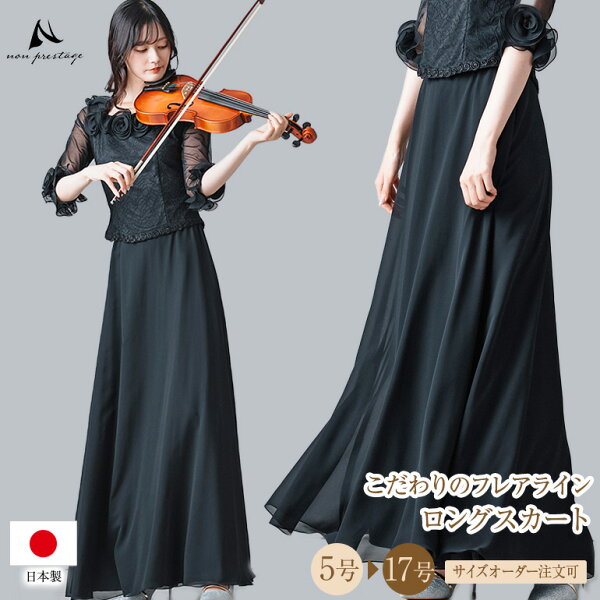 ロングスカート 黒 シフォン ジョーゼット セミフレアスカート コーラス 衣装 演奏会 フォーマル 合唱 第九 発表会 大きいサイズ オーケストラ 着痩せ【sk3071】