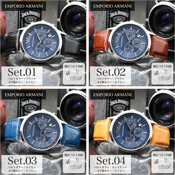 【 当店限定 ベルトセット 】 EMPORIO ARMANI エンポリオアルマーニ 腕時計 時計 メンズ ブランド メタル メタルバンド 革 革ベルト レザー レザーベルト 男性 男子 仕事 ビジネス 日付 カレンダー クロノグラフ 大人 プレゼント 誕生日 誕生日プレゼント 父の日 ギフト