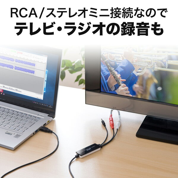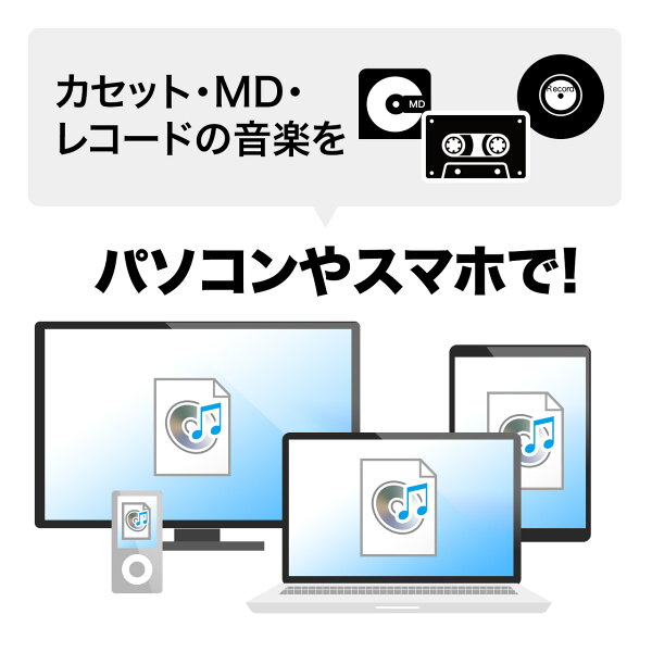 アナログ音声をデジタル変換できる、USBオーディオキャプチャー。付属の専用ソフトをパソコンにインストールすれば、カセットテープやMDの音声をデジタル化できるオーディオキャプチャーケーブル。Windows専用。