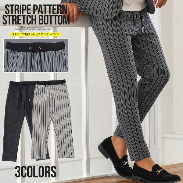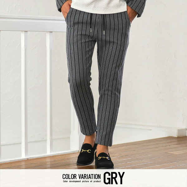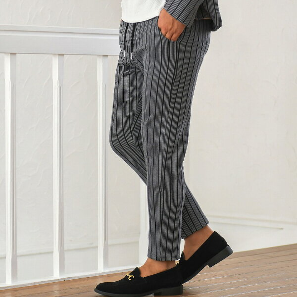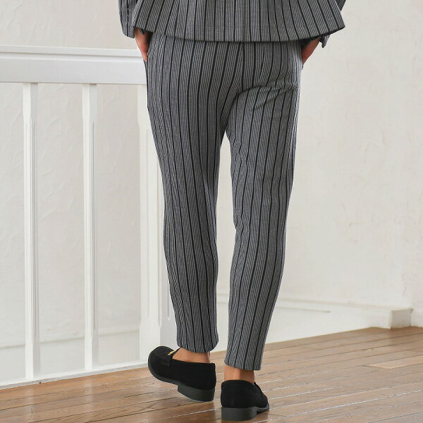 アンクルパンツ メンズ ブランド 大人 セットアップ可 綿 伸縮性 イージーパンツ ボトム テレワーク リモートワーク 在宅勤務 ストレッチ ストライプ スリム 細身 グレー ブラック ホワイト 黒 白 M L XL きれいめ 秋 冬 春 CavariA キャバリア 男性 男 父の日 父の日ギフト 父の日プレゼント 20代 30代 40代 メンズファッション 東京 プレゼント 誕生日 記念日 贈り物 ギフト