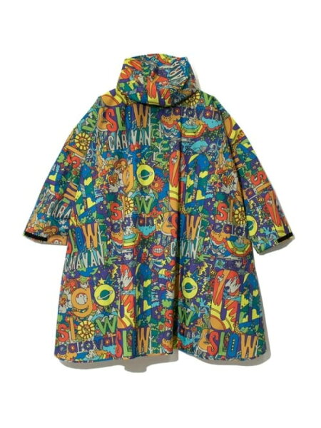 KiUの定番・袖つきレインポンチョ「NEW STANDARD RAIN PONCHO」をベースに go slow caravan のグラフィック「サイケ」と「ウーパールーパー」を全面に使用した、インパクト抜群のポンチョが登場です。