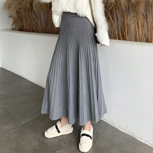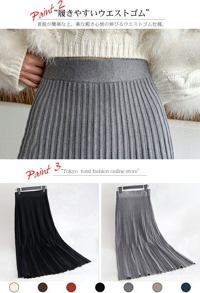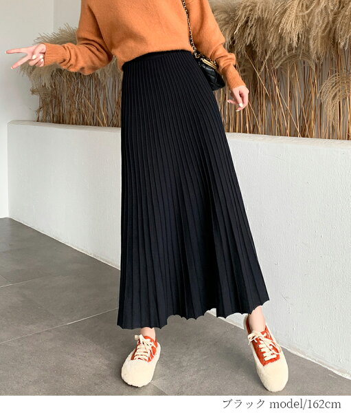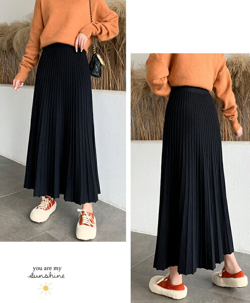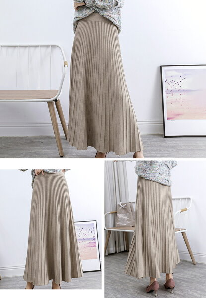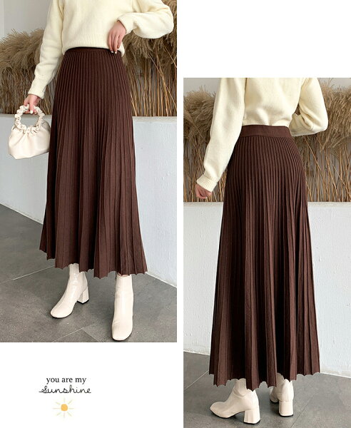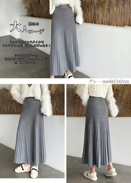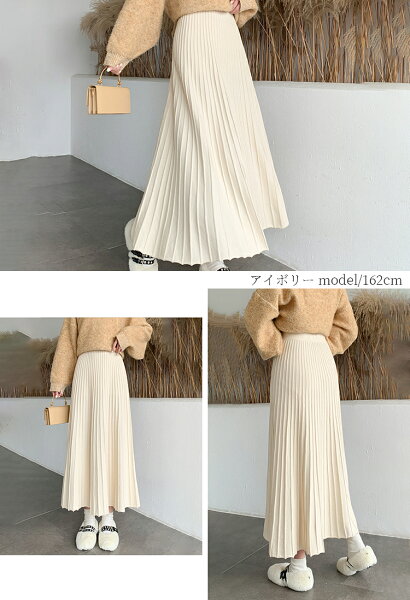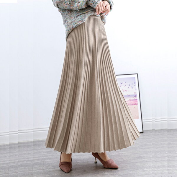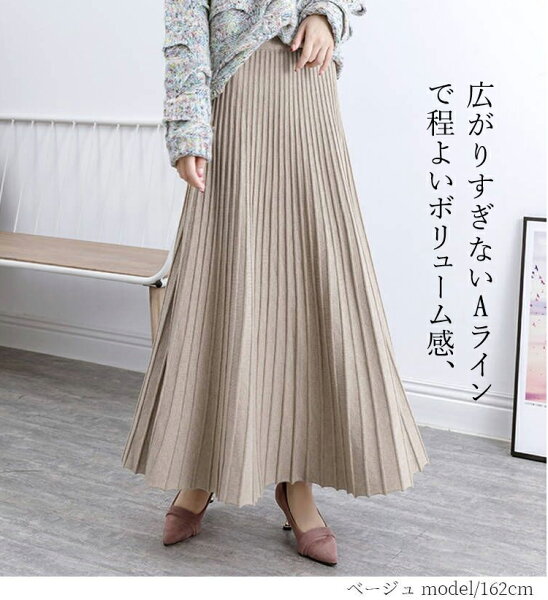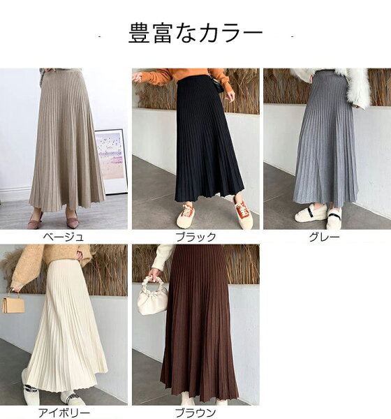 \半額クーポン利用で3,280円/スカート プリーツ プリーツスカート レディース ボトムス ロングスカート ロング 秋冬 ニットスカート 厚手 フレア ボトムス マキシ丈 ウエストゴム Aライン 暖かい 美シルエット 大きいサイズ きれいめ カジュアル 送料無料