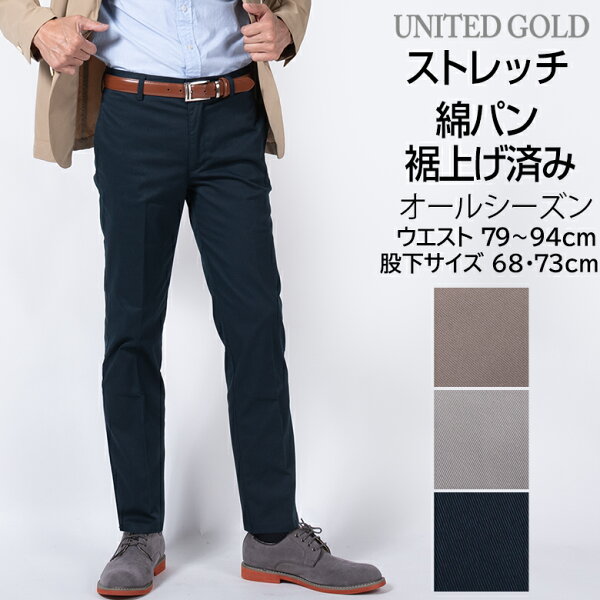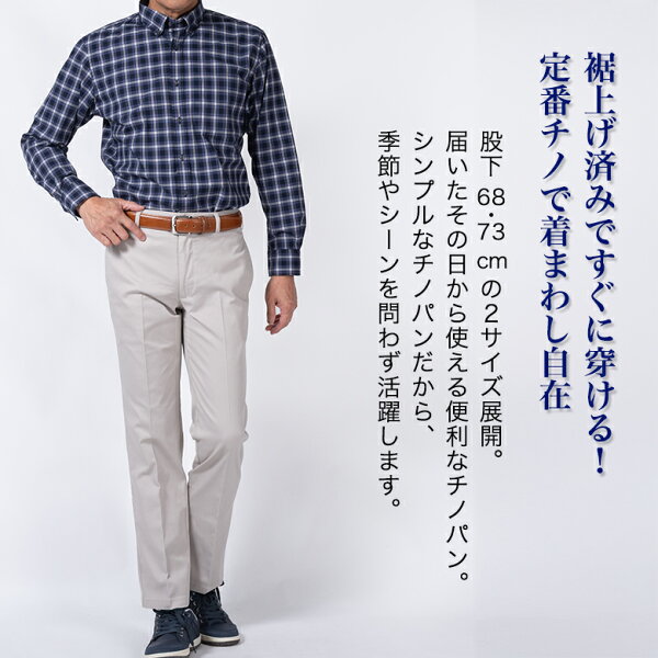 【12/26迄 クーポン配布中】裾上げ済み メンズ チノパンツ 股下68cm 73cm ストレッチ 洗える ノータックパンツ カジュアルパンツ オールシーズン対応 チノパン 綿パン 綿混 40代 50代 60代 散歩 旅行 春 夏 秋 冬