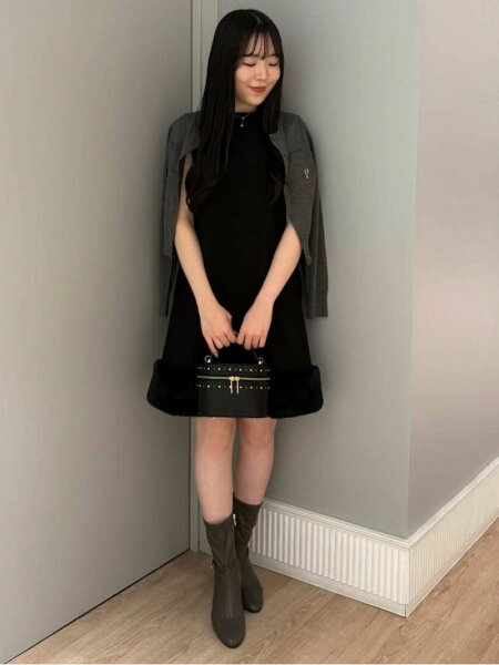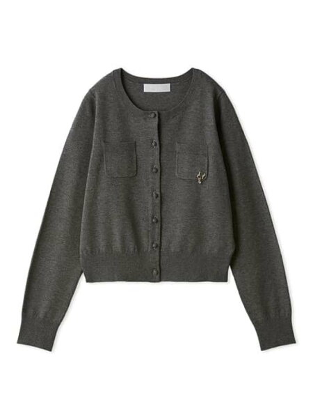 胸元で光るオリジナルロゴパーツと揺れるビジューチャームがキャッチーなカーディガン。