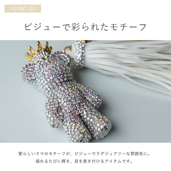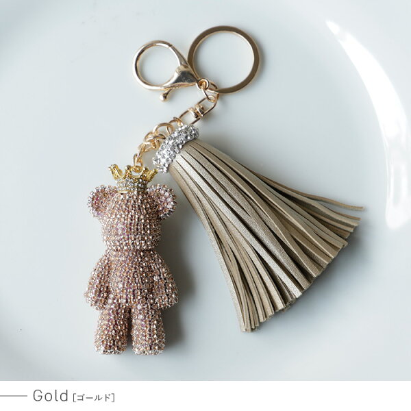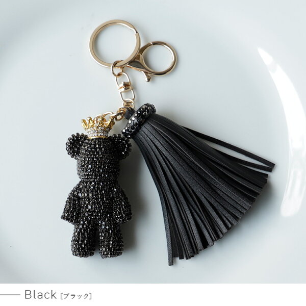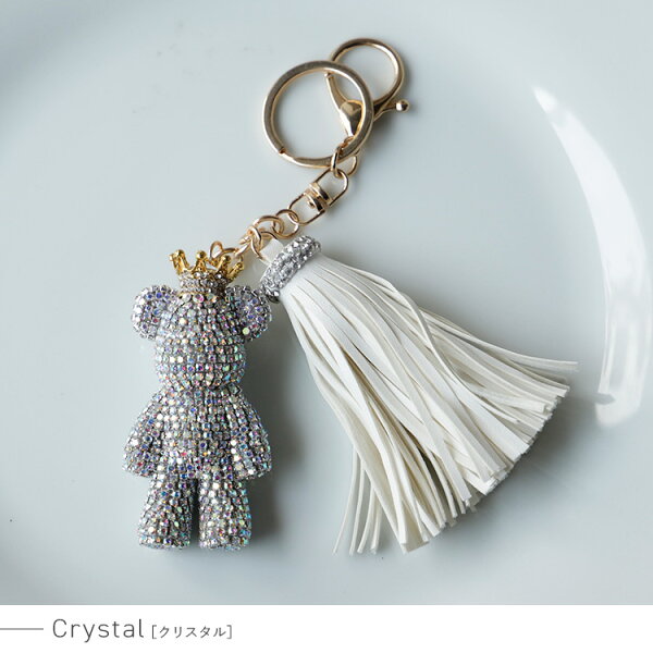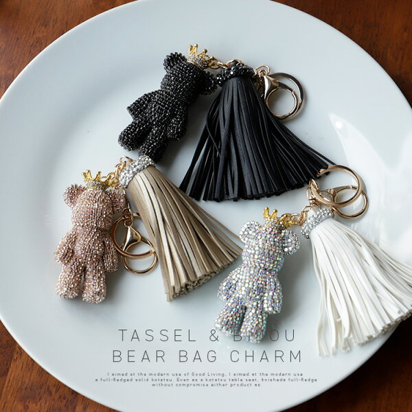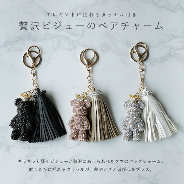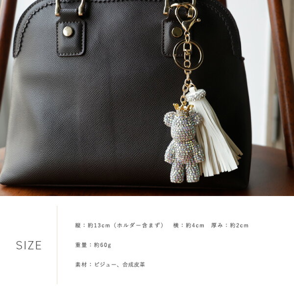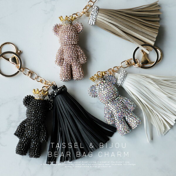 バッグチャーム キラキラ ビジュー クマ くま ベア 熊 タッセル フリンジ キーホルダー おしゃれ かわいい キーリング バッグアクセサリー ラインストーン 大人 女性 おそろい 上品 ナスカン 【メール便】 vns3ac-bc337 【aroco/アロコ】 クリスマス プレゼント