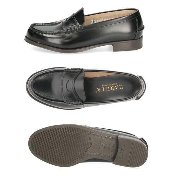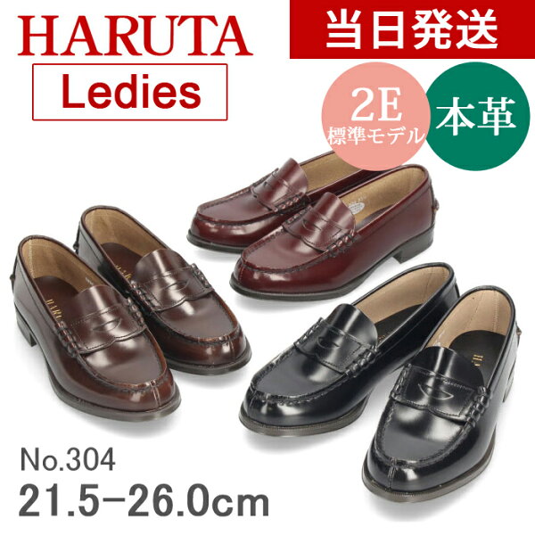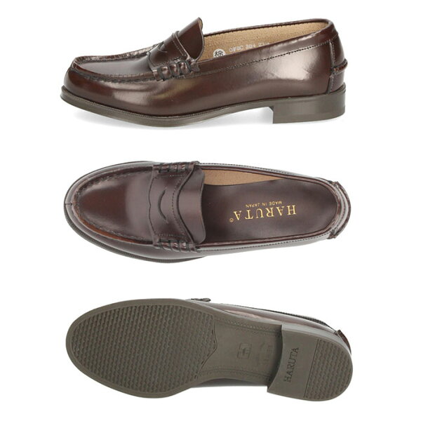 【初売り★クーポン発行中】 【ポイント11倍】 ハルタ ローファー レディース HARUTA 本革 304 【サイズ交換OK】 学生 靴 コインローファー 定番 通学 2E 21.5-26.0cm ローター ブラウン クロ スクール