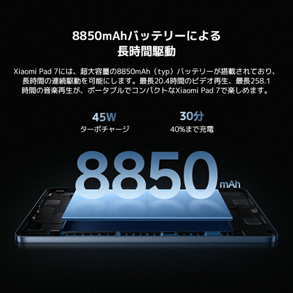 [5,000円OFFクーポン12/19 20:00~12/26 01:59]Xiaomi Pad 7 タブレット 8G+128G Snapdragon 7+ Gen 3 3.2K 144Hz高精細ディスプレイ 8850mAh 45W急速充電 3:2アスペクト Wi-Fi 6E/Wi-Fi 6接続対応 Dolby Atmos HDR視聴体験保証