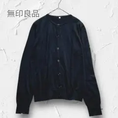 Y4567【無印良品】クルーネックカーディガン 長袖 ブラック ウール100%