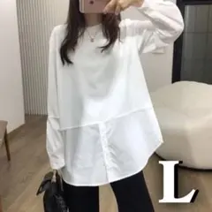 白 Tシャツ ロンT 長袖 レイヤード 重ね着 ホワイト カットソー 切替 L