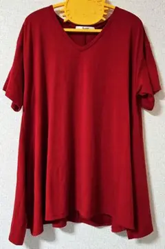 赤のVネックTシャツ チュニック 半袖 M