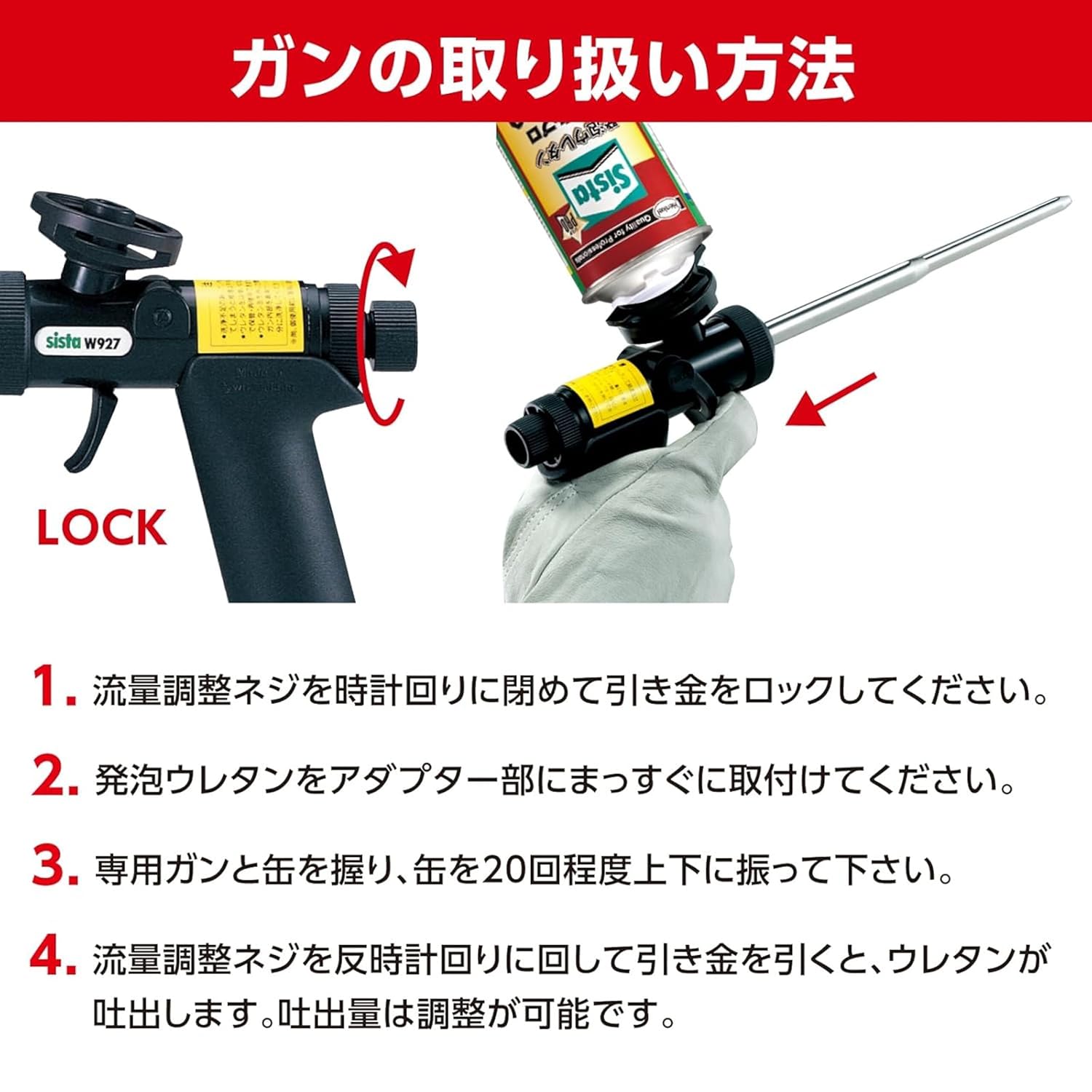 ・ウレタンの吐出量は専用ガンの流量調整ネジで行なう。
