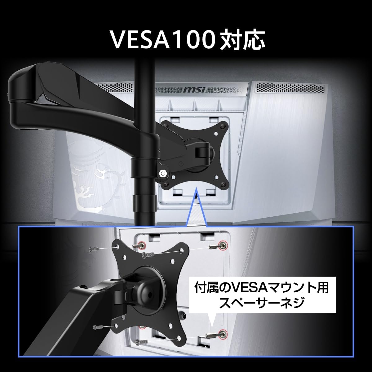 | 同梱商品: | DisplayPortケーブル ×1 HDMIケーブル ×1 USB Type-A - Type-Bケーブル ×1, 電源ケーブル ×1 VESAマウント用スペーサーネジ ×4 クイックスタートガイド ×1 |