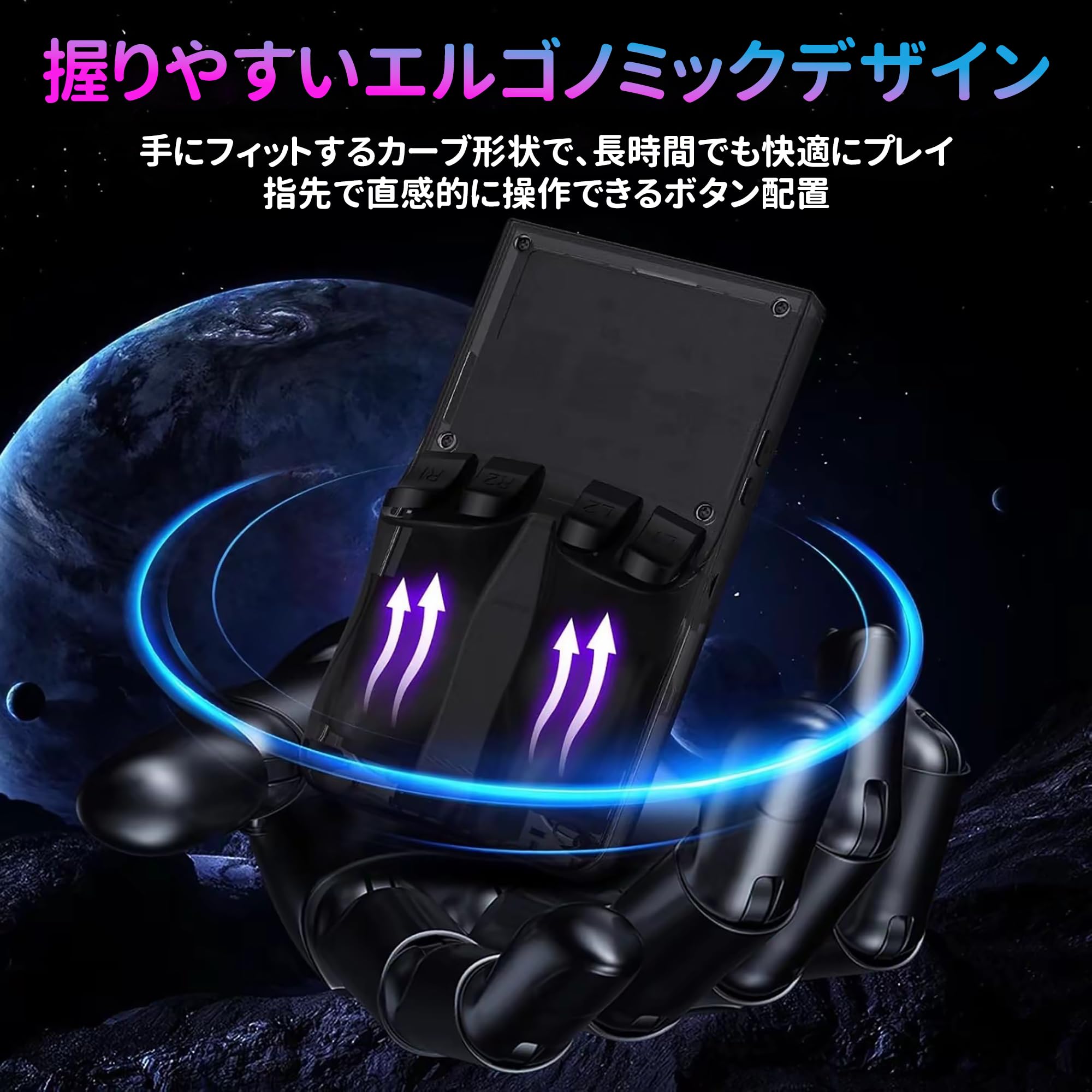 人間工学に基づいたグリップ形状で、長時間プレイでも疲れにくく、ハンドヘルドゲームコンソール / ポケットゲーム機として快適な操作性を実現しました。