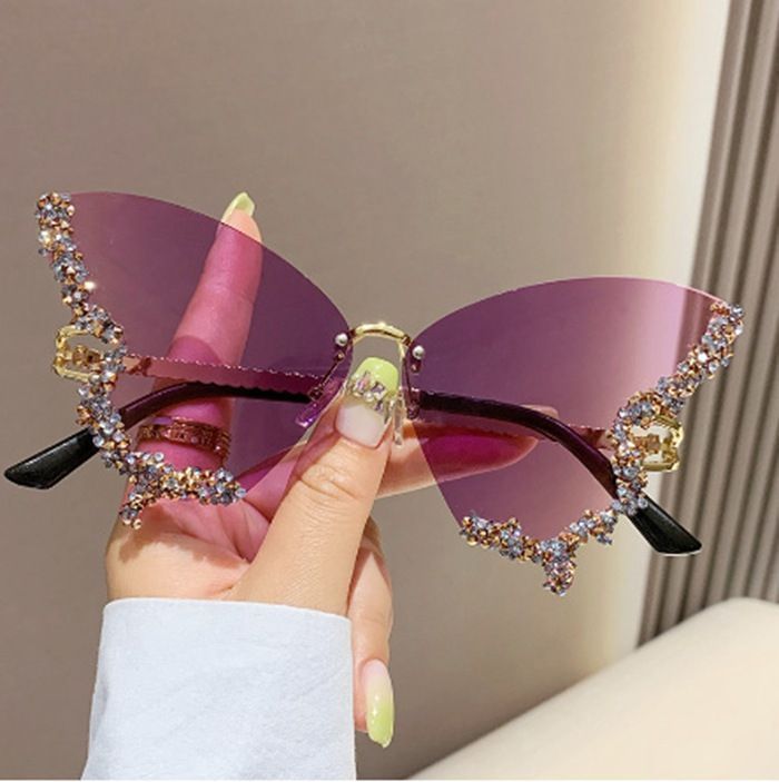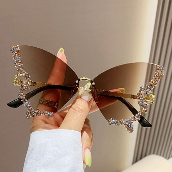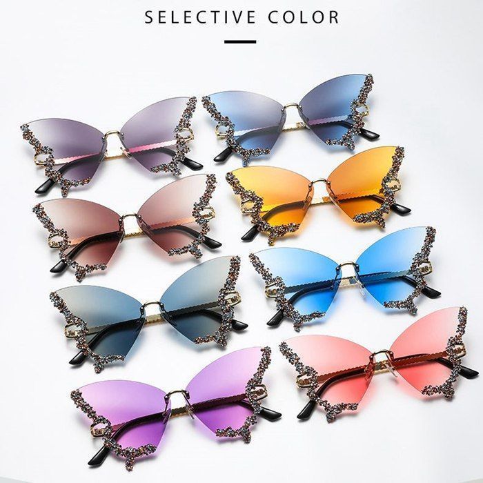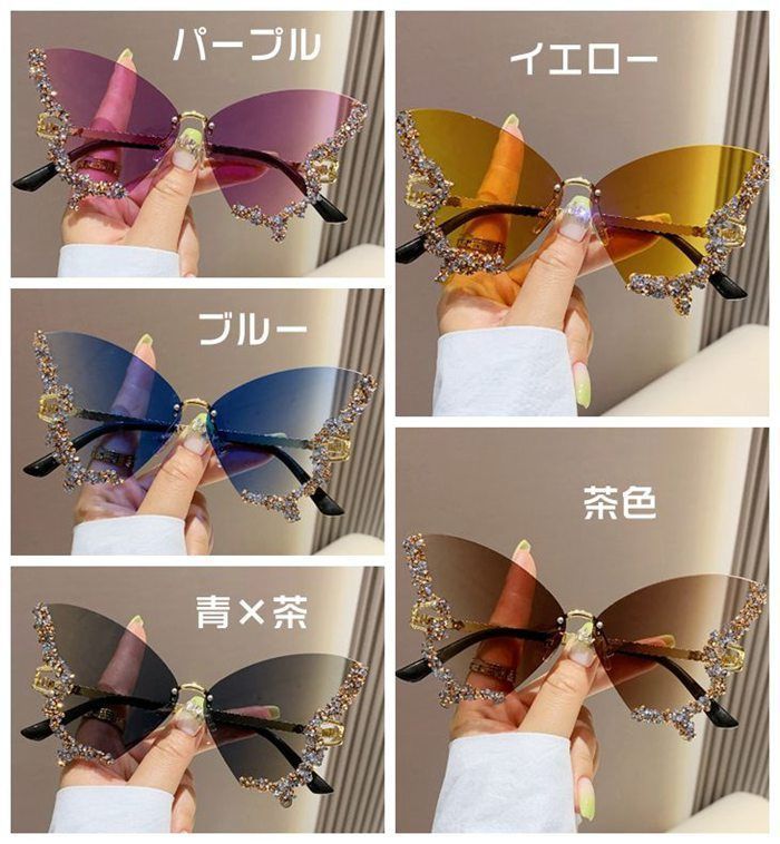 レディース サングラス バタフライ ハンドメイド ダイヤモンド 伊達メガネ インレイ トランスペアレント カラー ウェーブ レッグ ヨーロッ
