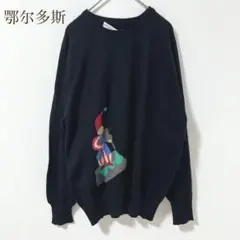 EERDUOSI カシミヤ100% ニットセーター(L)黒 左胸刺繍デザイン