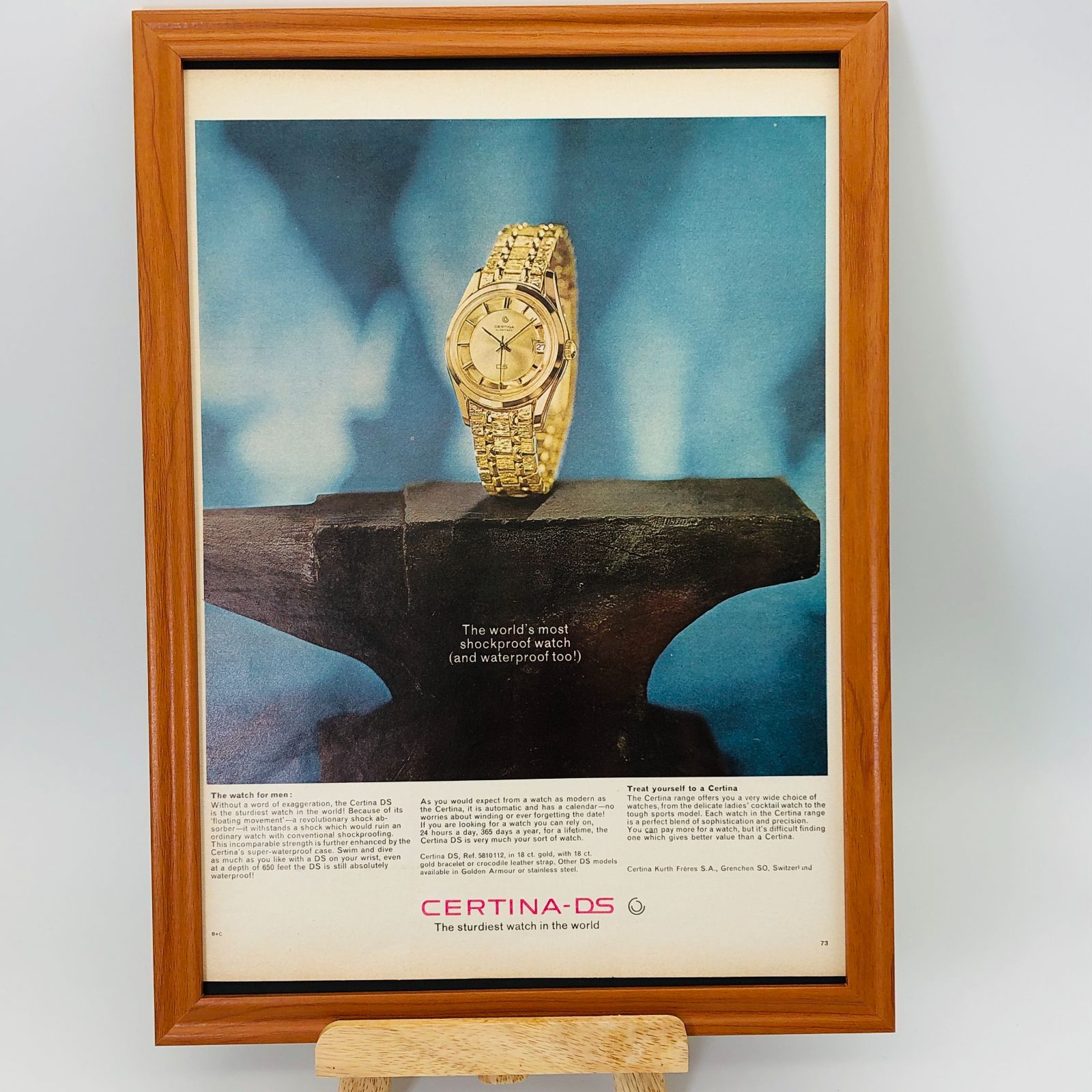 ビンテージ 広告 ポスター  『 サーチナ(Certina)DS腕時計 』 フレーム付 ※貴重な当時物 1960's オリジナル アメリカ ヴィンテージ 輸入雑貨 アドバタイジング レトロ( AZ1224 )