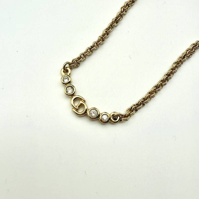 美品 Dior CDロゴ ネックレス ラインストーン ゴールド クリスチャンディオール Christian ヴィンテージ