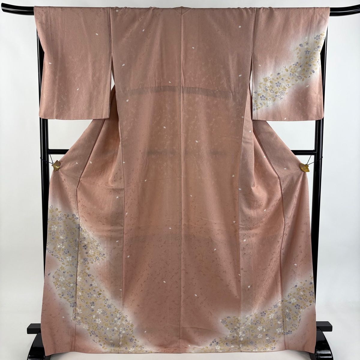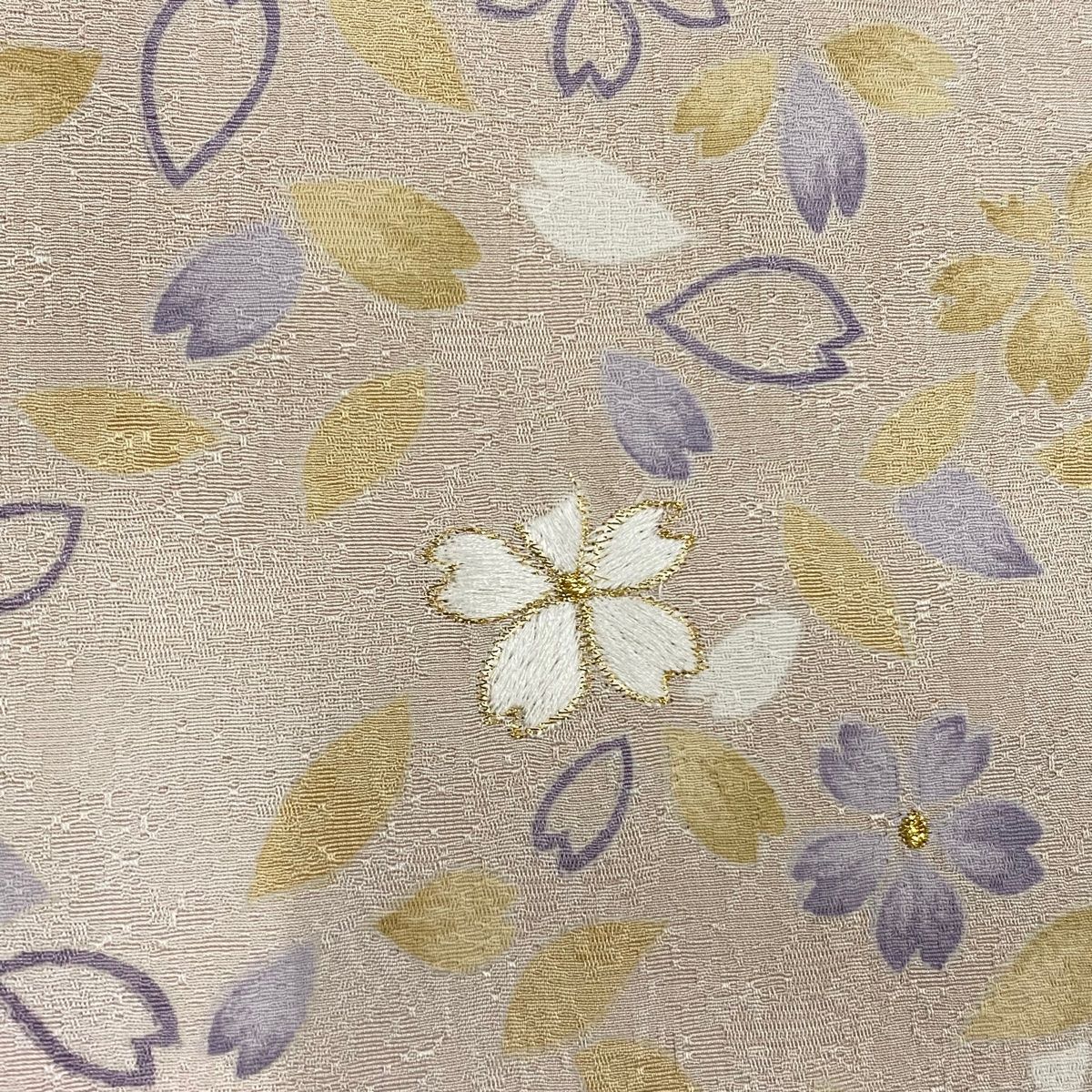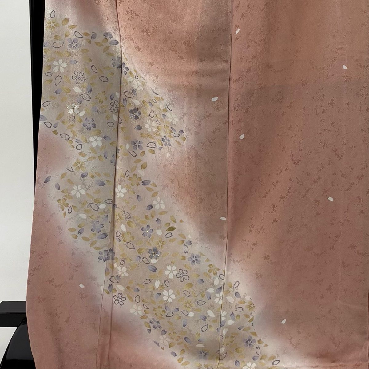付下げ 身丈170cm 裄丈68cm L 袷 桜 桜の花びら 箔 刺繍 ピンク 正絹 秀品 【中古】
