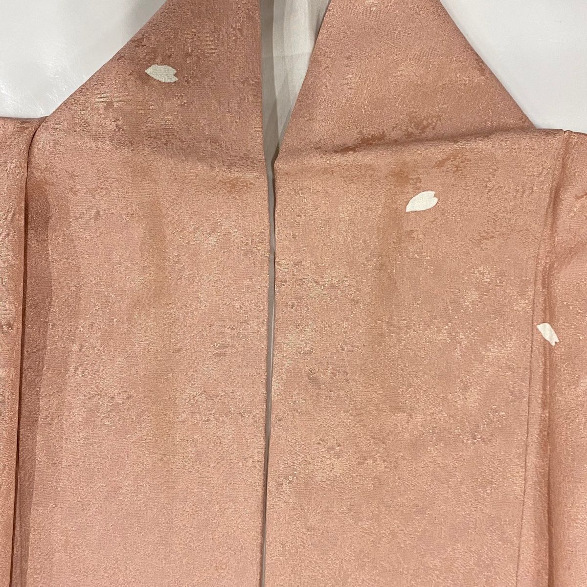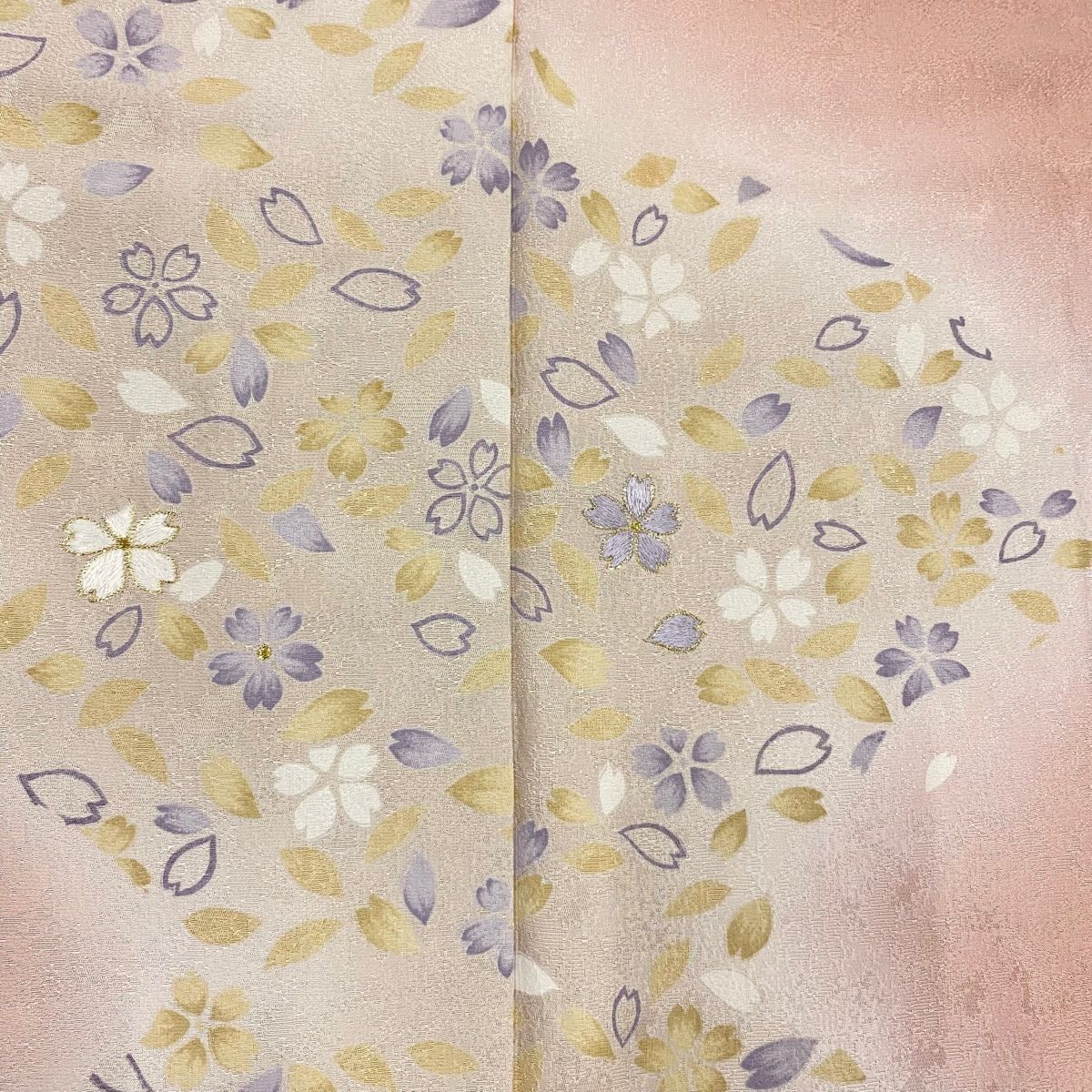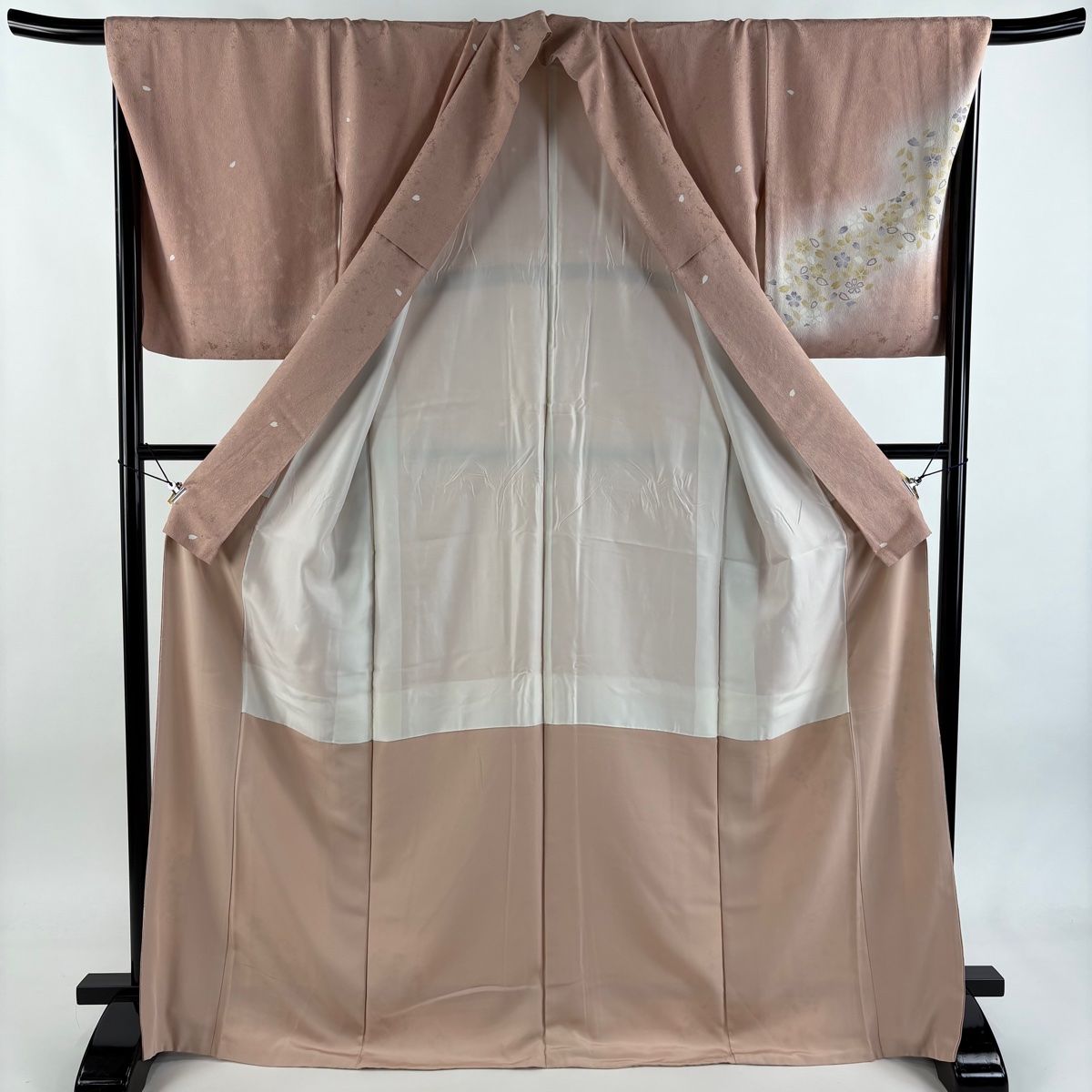 付下げ 身丈170cm 裄丈68cm L 袷 桜 桜の花びら 箔 刺繍 ピンク 正絹 秀品 【中古】