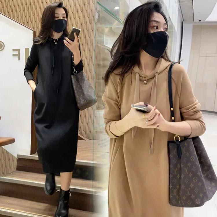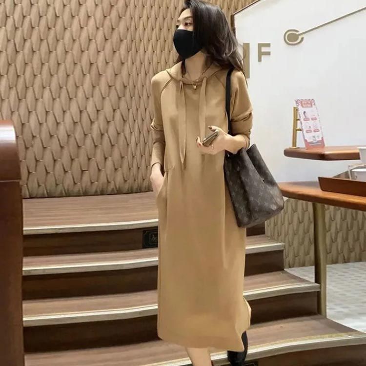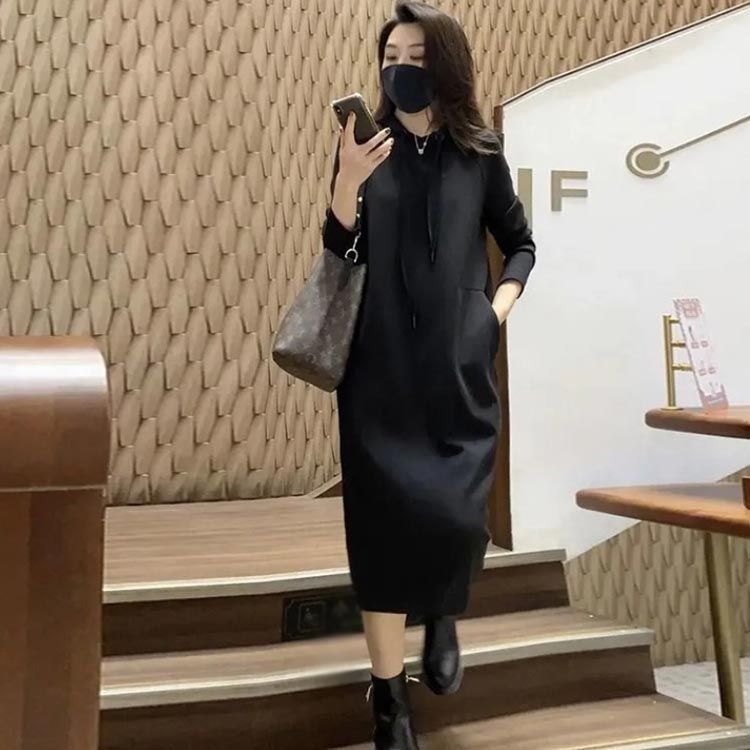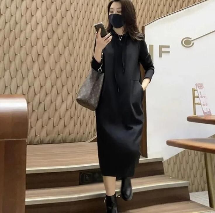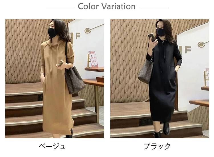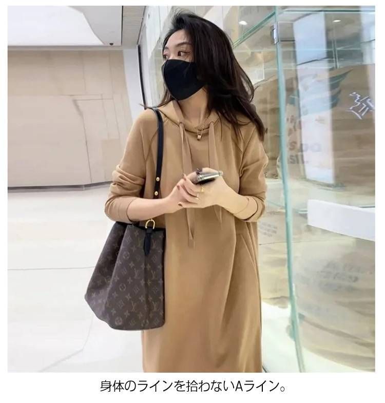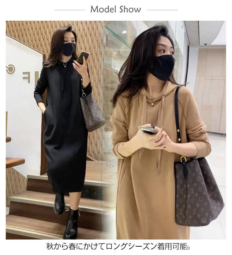 ロング丈 ワンピース パーカーワンピース レディース 長袖 ロングワンピース 秋冬 フード付き マキシワンピース ロングワンピ 着痩せ カジュアル 大きいサイズ フーディー aライン 体型カバー 無地#zjjj2429