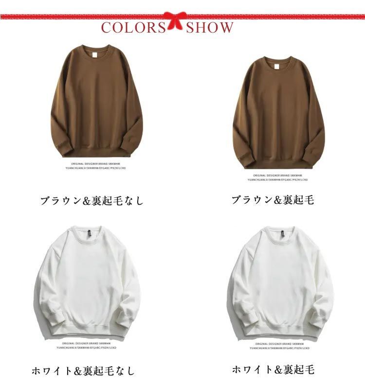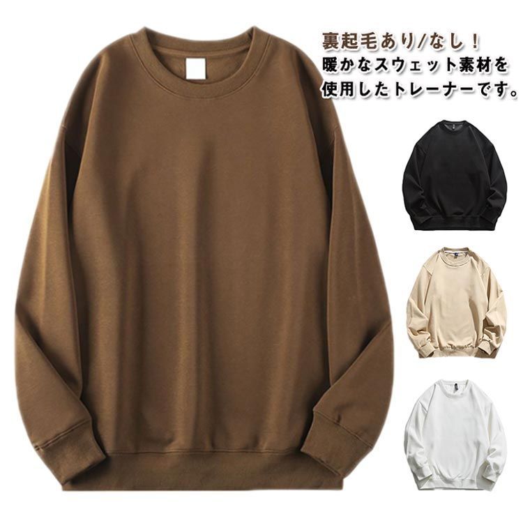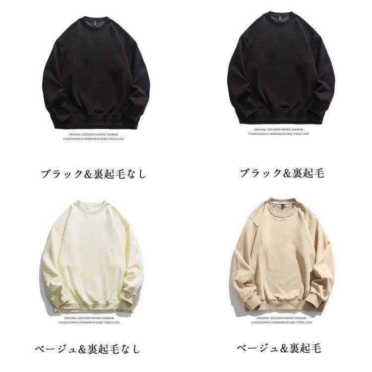 裏起毛あり/なし!防寒 暖かい プルオーバー クルーネック スウェット トップス 冬服 厚手 裏起毛 裏ボア 無地 シンプル メンズ あったか スエット 大きいサイズ ゆったり 長袖 レディース 男女#dongdong12247