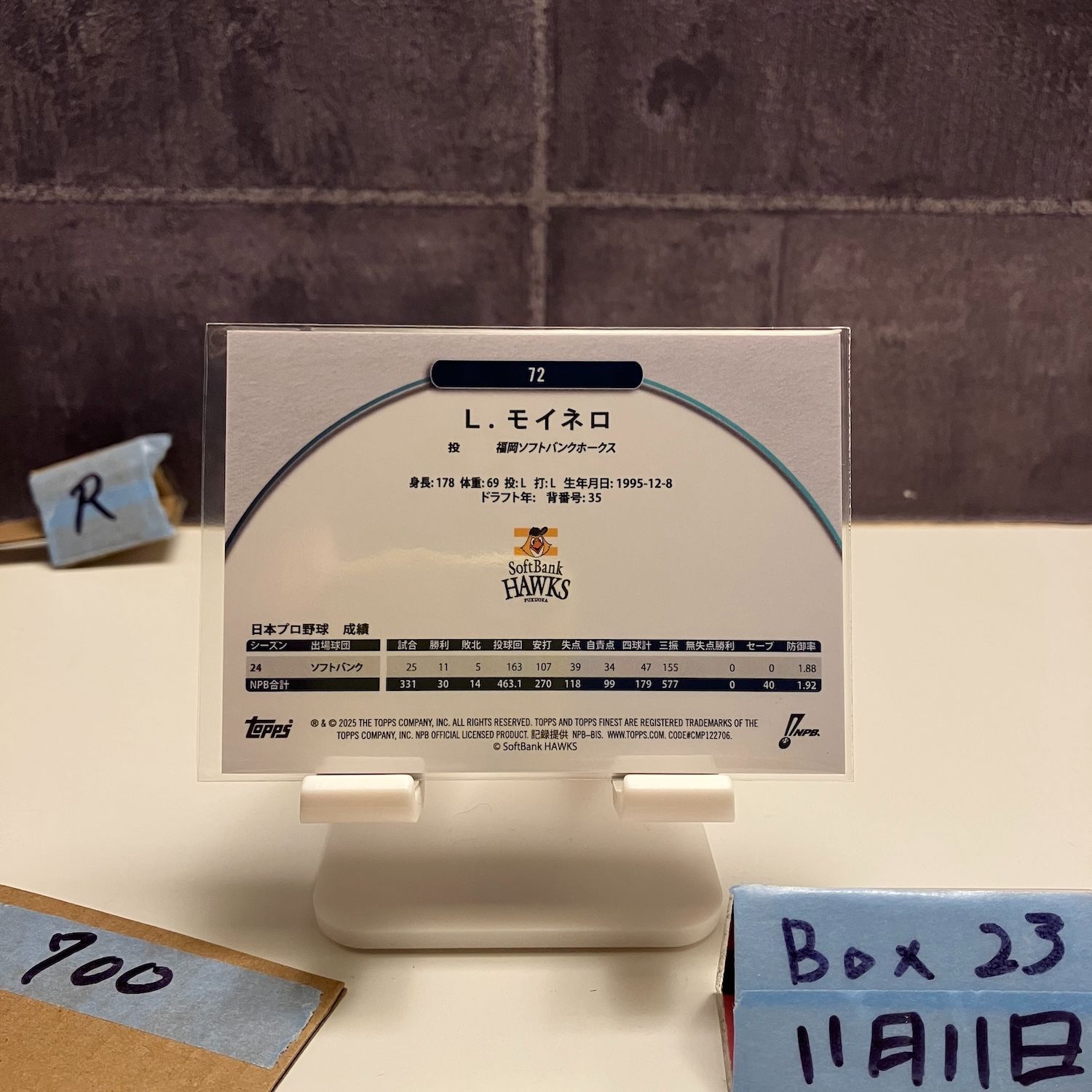 2025 Topps Finest Livan Moinelo 132/150 Fukuoka SoftBank Hawks Blue Refractor カード